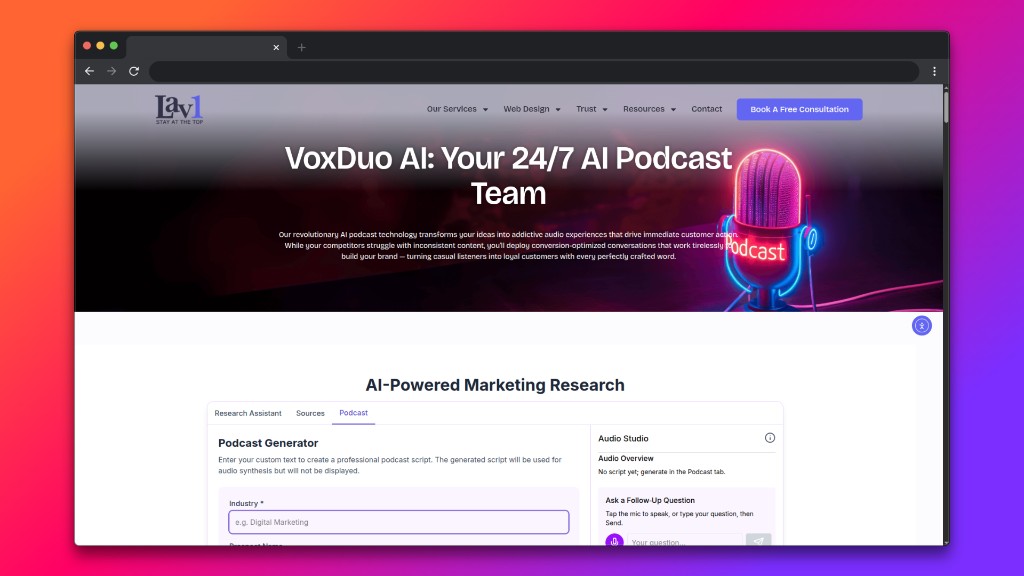 NotebookLM-inspired podcast generator that creates personalized, under-a-minute AI dialogues for live sales demos, with real-time Q&A and studio-grade audio.